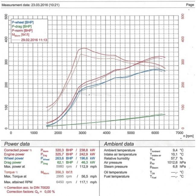 Rolling road power testing of the Honda Civic Type R (FK2) sports exhaust (cat back - resonated).