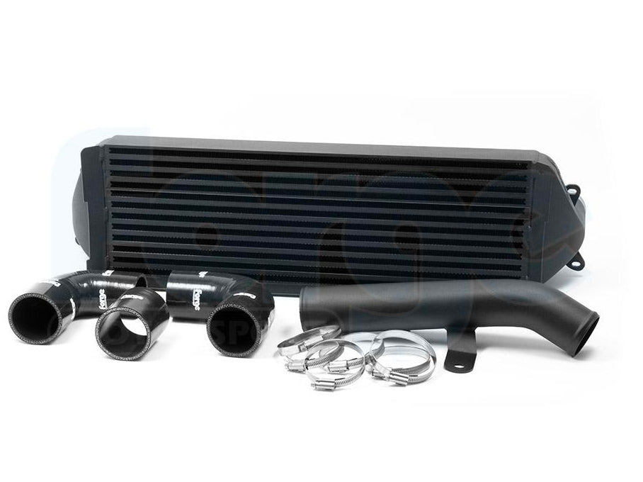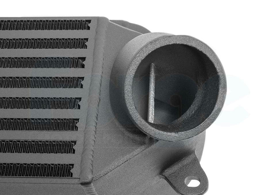 The inlet and outlet sizes have been increased in diameter to 65mm, giving an increase of 27% more volume over the stock cooler to give perfect flow. The development team also added a custom hard pipe increasing the diameter by 14 mm to 64mm - up from the factory 50mm. This replaces the stock factory pipe on the hot side to ensure this package gives you all you need for maximum performance gains on high levels of tune.
